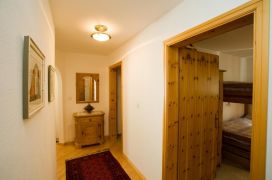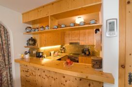 Die Innenausstattung lässt keine Wünsche offen. Neben einem Doppelschlafzimmer, einem Zimmer mit zwei Einzelbetten und einem Zimmer mit Kajütenbett für zwei Kinder bietet die Wohnung ein Wohnzimmer mit Balkon und Kamin sowie eine schöne Essecke mit Erker. Die Küche verfügt über einen Geschirrspüler, Backofen, Mikrowelle und Kaffeemaschine. Zur weiteren Ausstattung gehören ein Bad mit Dusche und Waschmaschine, ein weiteres Bad mit Badewanne, SAT-TV, Internetanschluss, Radio und Telefon. Für das leibliche Wohl sind eine umfangreiche Küchenausstattung mit Kochutensilien und Geschirr von Villeroy & Boch vorhanden, ebenso die Möglichkeit für Raclette und Fondue.