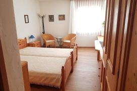 Moderne, kinderfreundliche 3,5-Zimmer-Parterrewohnung (80 m2) in neuerem 3-Familienhaus. Sicht Richtung Berninapass, Rosegtal, zum Stazerwald und auf St. Moritzer Bergkette (Piz Nair etc.). Wohn-/Esszimmer mit Kamin, windgeschützer Terrasse/Garten, SAT-TV, Radio, Telefon, Internetanschluss. Offene Küche mit Geschirrspüler, Backofen, Kaffeemaschine. je 1 Doppelschlafzimmer mit Bad/WC und mit Dusche/WC. Waschmaschine mit Tumbler in Wohnung. Skiraum. Garage und Gästparkplatz. Nähe Bushaltestelle, Loipe, Curling-/Hockey/Tennis- und Kinderspielplatz. Haustiere nicht erlaubt. Nichtraucherwohnung.