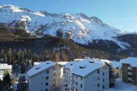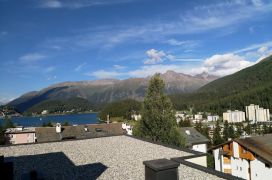 Balkon und eigene Dachterrasse mit Blick über den St. Moritzer See und das ganze Tal.