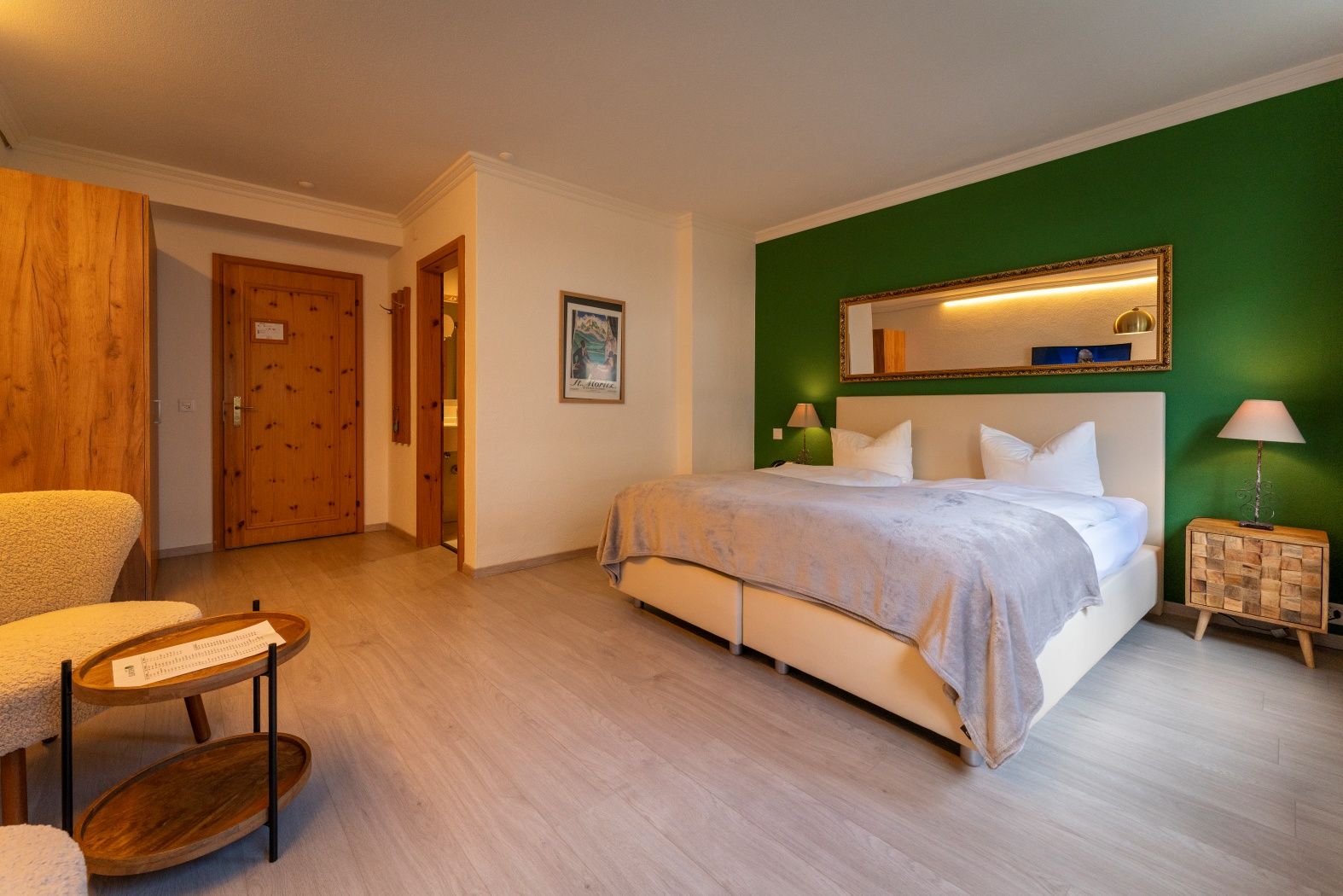 Vertraut zu Zweit oder für Single-Reisende wie gemacht. Warme moderne Holztöne für Ihre ganz private Wohlfühlatmosphäre. Einige der einladenden Zimmer verfügen über eine formidable Aussicht vom Balkon oder der Terrasse aus, nach Süden auf den Piz Corvatsch. Kuschelig, fast wolkengleich ist das Queensizebett 140x200 - hier werden Sie geruhsam schlafen. Das moderne Badezimmer bietet eine Badewanne oder Dusche/WC, Flatscreen TV, kostenfreies WLAN und Telefon.